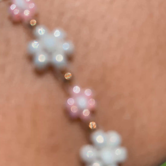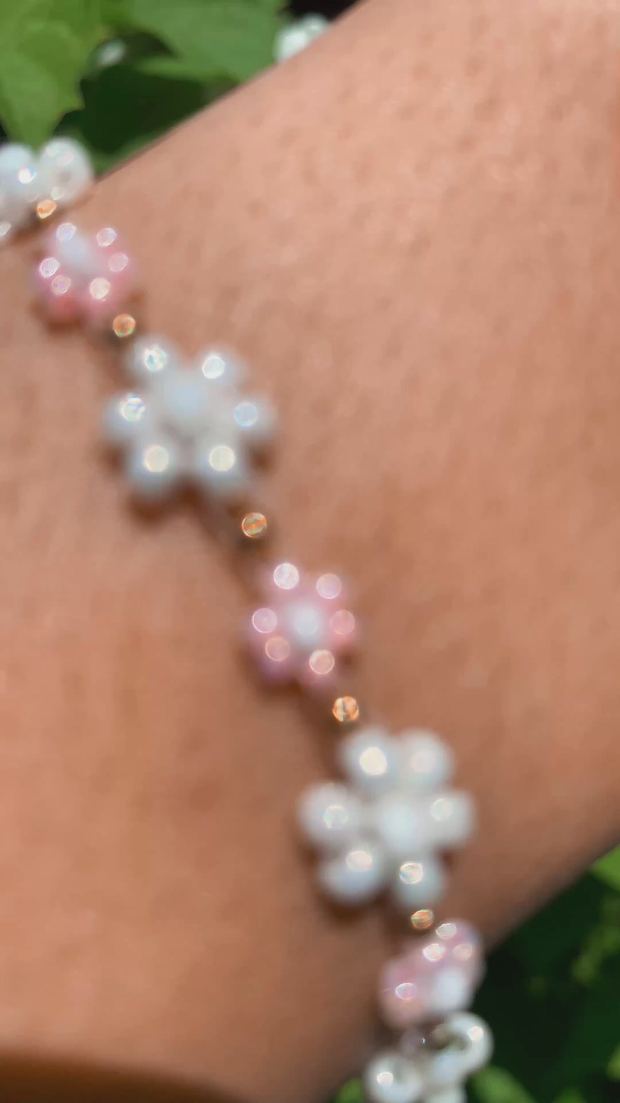 Our Lydia bracelet features a continuous chain of handwoven daisy flowers made entirely from high-quality Miyuki beads.